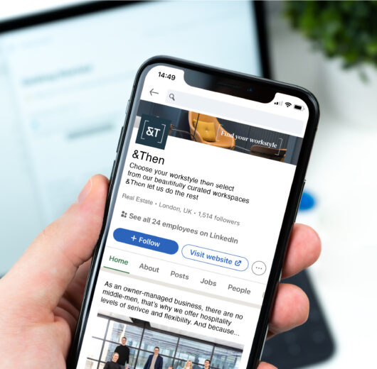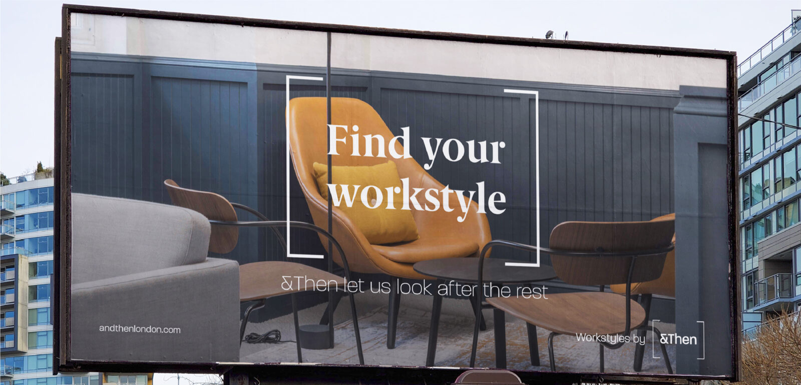 We worked with long standing client Riverside Capital to create a brand for their new managed office platform. &Then creates beautiful workspaces and tailored offices built around the highest spec. sustainability, connectivity, design and service.