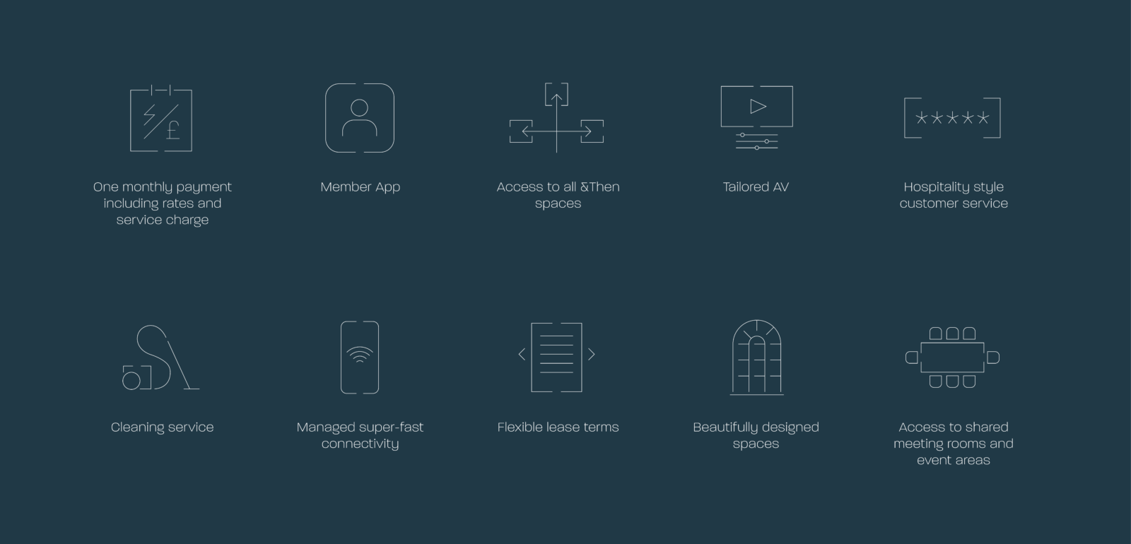 We worked with long standing client Riverside Capital to create a brand for their new managed office platform. &Then creates beautiful workspaces and tailored offices built around the highest spec. sustainability, connectivity, design and service.