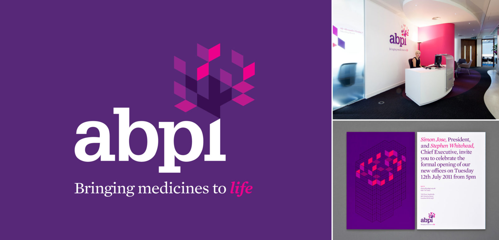 The ABPI (The Association of the British Pharmaceutical Industry) needed to refresh their image of 40 years. Working with our friends at Hensley Partners who lead the research and repositioning part of the project, we worked to translate the strategy into a fresh new look. Based on the idea of smaller components collaborating to create something bigger, we designed the geometric tree inspired by an ancient medical symbol. We then brought the tree to life across everything from signs to digital formats and print applications.